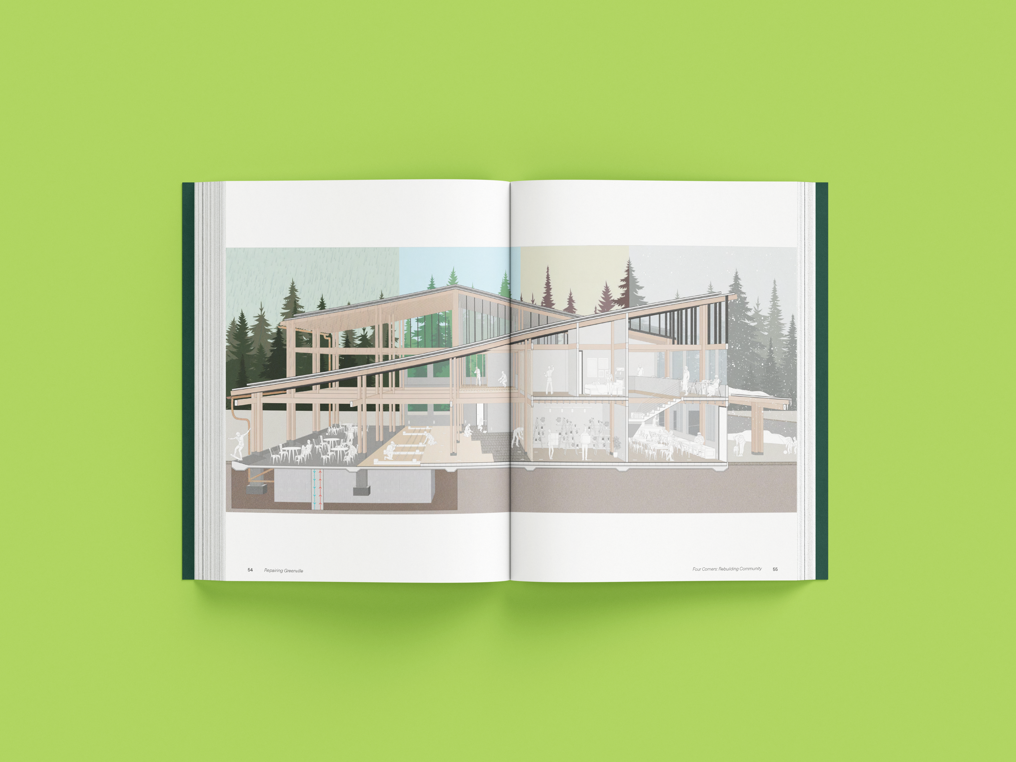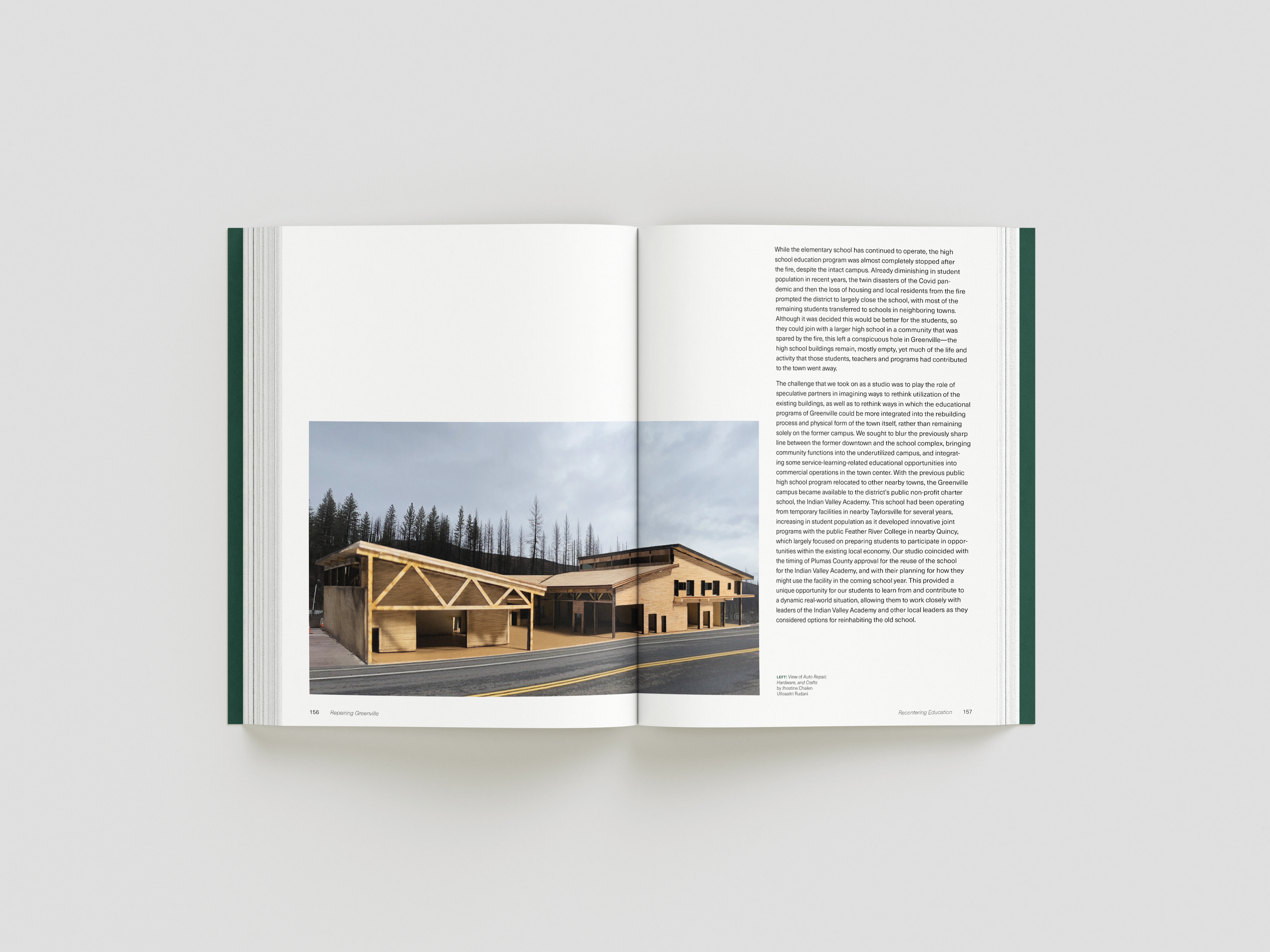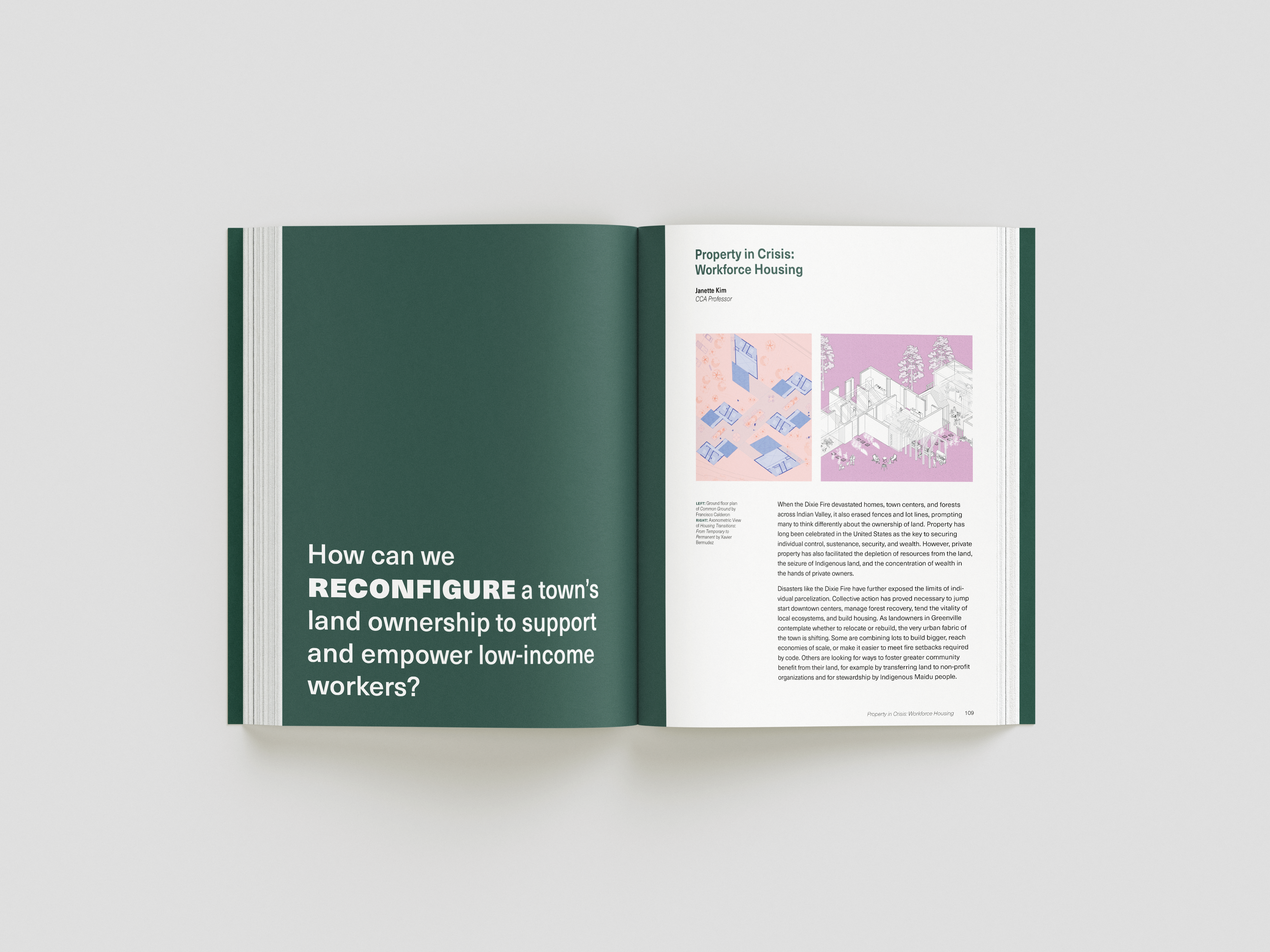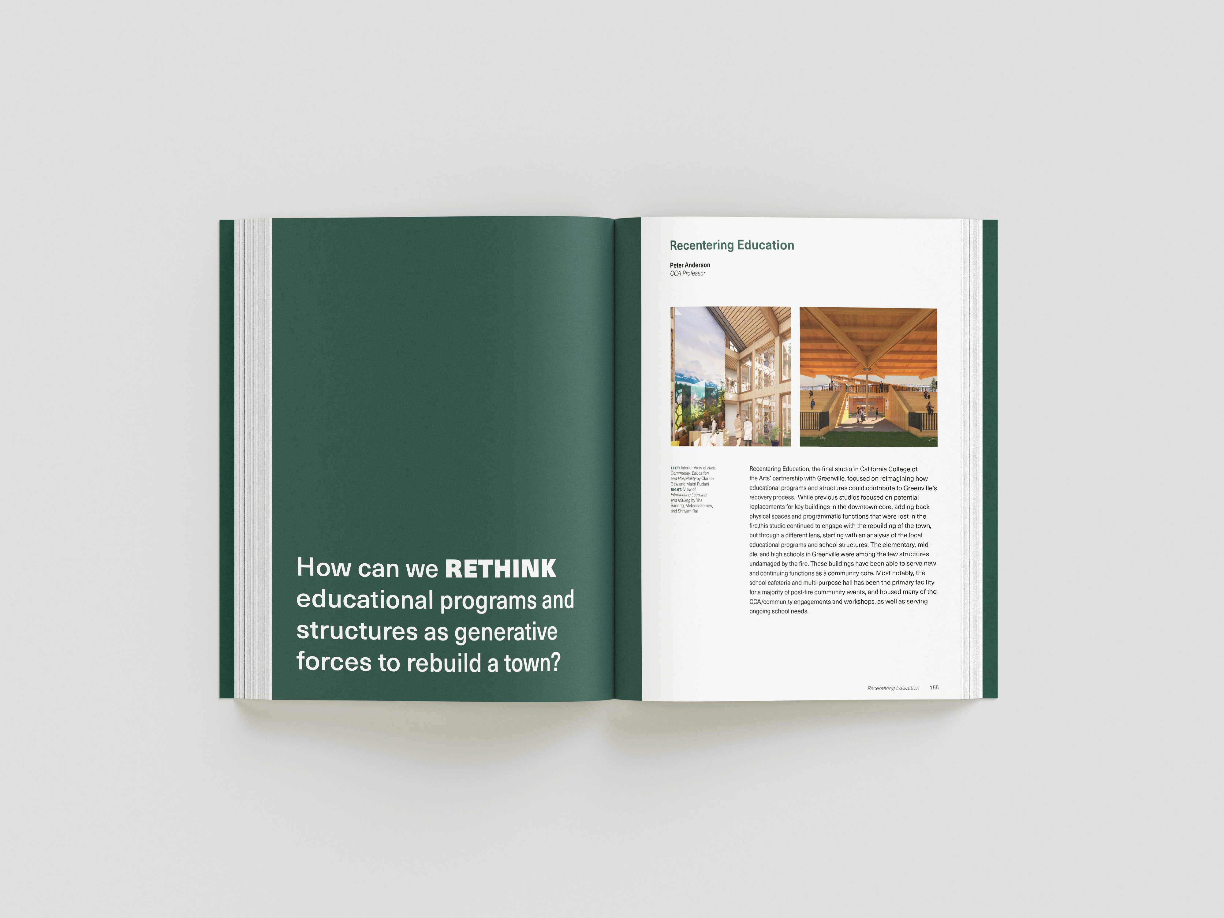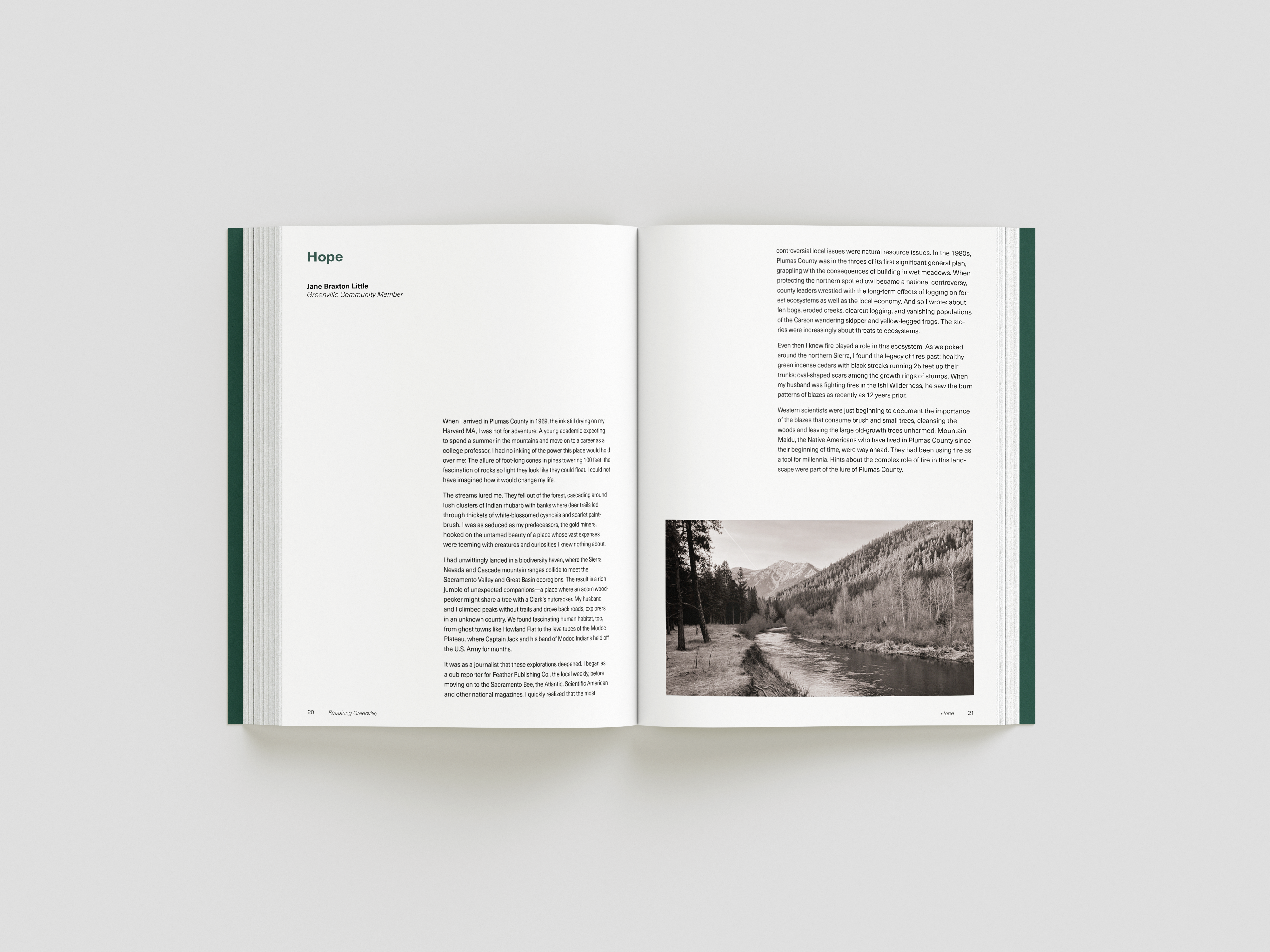 while taking bob aufuldish’s editorial design class, i was selected for an opportunity to design a book for cca’s architecture program. the program offered classes from 2022-2024 that gave students an opportunity to design new buildings and structures for the town greenville after it was almost completely destroyed by the dixie fire in 2021. this book is a documentation of their experiences, final projects coupled with stories from the townspeople who survived and hope of rebuilding.